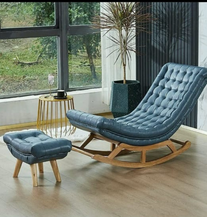 Elegant wooden rocking chair with hand-carved floral detailing. Smooth curves designed for ultimate comfort. Fine craftsmanship with a premium polished finish.